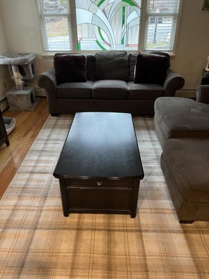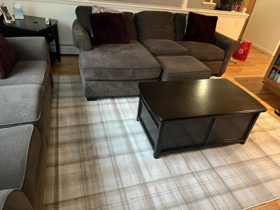 Thought I had scored with this rug because I loved the tones and the price was great. The rug came quickly and was a little more muted in color than online. Like grey with a green tinge. Even worse- it is one of those treads that changes color depending on which way you brush the fabric/rug. So anytime someone walked over it, it looks like it has mud stains all over it. Looked dirty 100% of the time, no matter how much I vacuumed it in the same direction. Major fail.