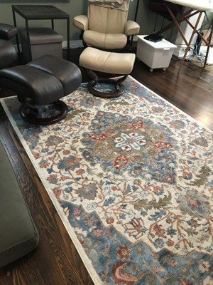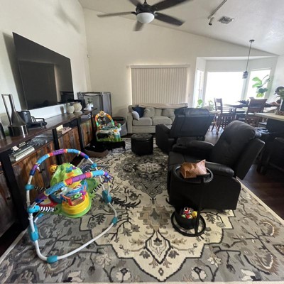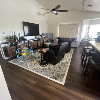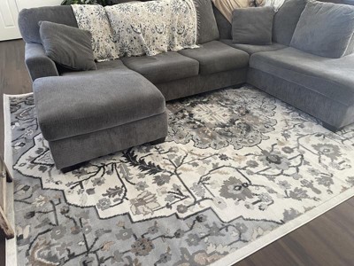 I am so extremely happy with this rug! I’ll start by saying, I genuinely searched and searched for an entire week before accidentally stumbling upon this beauty. It’s so soft, the pile height is exactly what I was looking for, and the rug is just as pictured. The beautiful filigree of flowers and feather like pattern fits the aesthetic of our family room perfectly. There’s some corners that’ll well work on laying down, but that’s to be expected. I also really appreciate that the rug comes with a card with instructions on how to handle corners that stick up after shipping. It seems really high quality for such a wonderful price. I’m just so pleased with this rug and absolutely recommend this brand to anyone looking for artwork in the form of an area rug!