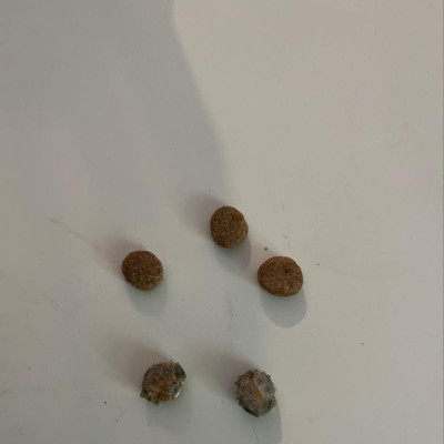 I purchased this food because I was looking for a healthy and cheaper food for my dog the neutrisource. I started feeding my dog this and she was eating it, but didn’t seem to really like it. I was pouring it into a smaller bag because we are going on a camping trip, and found that many of the kibbles had mold on them. This is disgusting and completely unacceptable. This is not good quality food and could get your dog sick