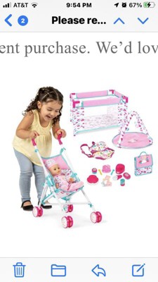 This is such an awesome doll set! It keeps my girls occupied for hours. They act like little mamas and it’s so cute to watch them. I love how this set comes with everything a doll needs, even a sippy cup where you can put water. I definitely recommend this set. It’s a great gift idea for any girl