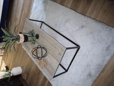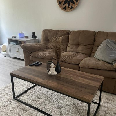 Are you hoping to make a big statement with minimalist furniture? Look no further! This coffee table is sleek, subtle, and made with a wood grain finish treated with water-resistant stain for easy cleaning. It has a stylish, natural feel with an open space underneath for poufs, baskets, and more! 7.5 sq.ft of storage space under a 1.25 thick table top all with a steel frame promises both style and durability for years!"