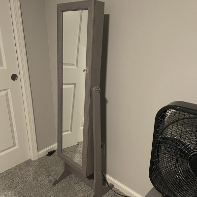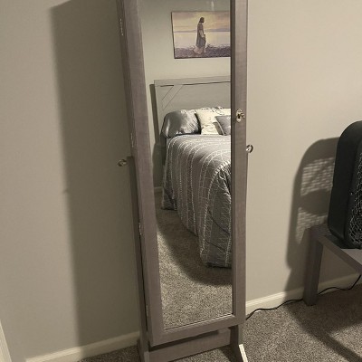 [This review was collected as part of a promotion.] This full length cabinet is great for holding a lot of jewelry. It does not take up a lot of space. My only negative is the mirror makes you look a little smaller than you are.