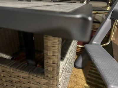 Damaged from shipper Target could not contact company for a replacement. Noticed after putting together so I could not return. This was not packaged well should have known when I opened the box. No protection around the table. I believe I was shipped a damaged table top from a return. I would not suggest purchasing