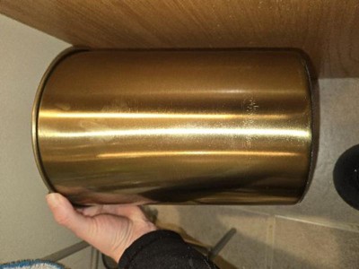 This gold waste basket is a stylish and functional addition to any bathroom or office space. Guests appreciate its beautiful color, sturdy construction, and compact size, making it perfect for small areas. Many find it enhances their decor while being practical. The thoughtful design includes a non-skid bottom to protect floors, and its elegant appearance makes it a joy to use. Overall, it combines aesthetics with functionality beautifully.