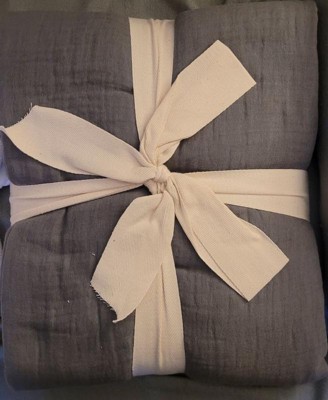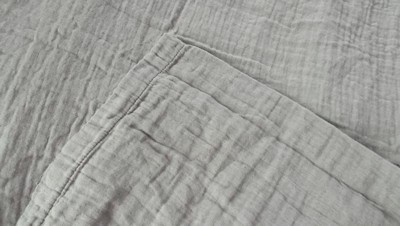 [This review was collected as part of a promotion.] Prior to owning this blanket I used Gauze blankets with my children. I really wanted a full size one for myself, and now I have one! This blanket is a lovely stone Gray color, it would match nearly any room. I've washed this blanket and it's handled being washed very well. I love it
