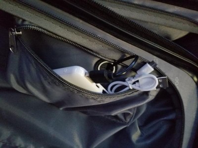 • A: Hi, The power bank comes in separate packing with a power chord to charge it. Before your first use you will need to charge it and then place it inside the interior power bank pocket in the carry on and connect it to the USB port wire.