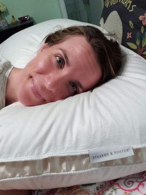 [This review was collected as part of a promotion.] I've been on the search for a great pillow and have found it in this Stearns & Foster DOWN(HALO) pillow. The pillow itself is all white with a gold band around the edges. The stitching is tight and thick, making me feel good about this pillow lasting a long time. The pillow is stuffed with natural feathers and has a 600 fill power down, making it super comfy and thick. I've had troubles in the past with my neck not getting enough support because my old pillows flattened halfway through the night. With this pillow, I have ample neck support throughout the night. I also absolutely love the loftiness of this pillow! My head sinks into it, as it is super soft and comfy, yet I still feel neck support and the pillow doesn't flatten all the way down. It's a great mix of softness and support. I'm very happy with this pillow. It makes my bed and sleeping routine feel much more luxurious!