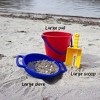 - BEACH & TODDLER SANDBOX FUN: This larger sand seive beach toy is 10" long (handle to handle) and 2" deep with easy to grip handles. Kids can search for even more treasure in the coarse or fine sand!