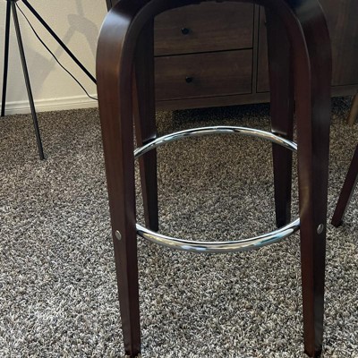 CHROME-FINISHED FOOT RAIL: The frame of this barstool is finished with a round foot rail to provide extra stability as well as a place to put your feet. This rail is coated with a chrome finish, offering a polished, decorative look and corrosion resistance that is easy to clean.