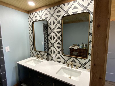 This mirror really transformed our vanity space in our master bathroom remodel. It truly elevated the room!