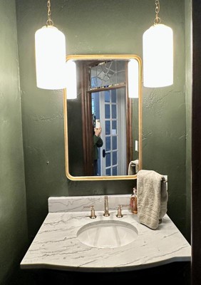 This mirror was perfect for the vision created for this master bathroom update! The mirrors blended so well with the faucet, vanity and granite.