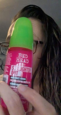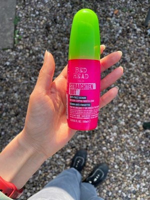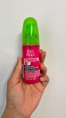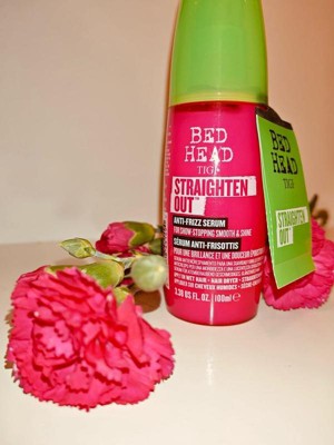 [This review was collected as part of a promotion.] The Bed Head by TIGI straighten out serum is a lightweight product, that helps fight breakage while leaving hair smooth and frizz free. It gives my hair so much shine and keeps it looking sleek throughout the day. It also helps protect my hair from heat damage when styling, and it smells amazing.