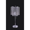 A clean touch to this delightful 20.25"H chrome lamp is ideal for transitional or glam style rooms, and makes an unexpected glistening accent mixed among traditional furnishings. Clear crystal inspired beadings surrounding the lamp with hanging crystal inspired, make this lamp a must have. Shade measures 8"L x 8"W x 8.5"H. Lamp Body measures 14"H w/ a 5" DIA Base. Harp measures 8.75"H.