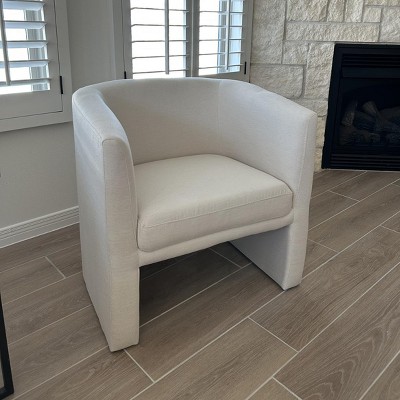 This chair was a happy surprise. I’ve been waiting for it to come back in stock in the natural linen color so when it did, I snapped it up. I absolutely love it. It’s the perfect width for my space and the fabric is really nice. It’s also surprisingly comfortable . I just need to add an accent pillow and it will be perfect. Very very happy!