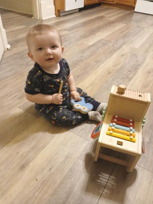 Bought this as a birthday gift for my 1 yr old nephew. He loved it immediately. Only change the parents suggested is having a slightly longer xylophone.