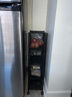 [This review was collected as part of a promotion.] Slim and compact but has enough space to store items. I am currently using this in my kitchen to store fruits and other miscellaneous items and it works perfectly for my space. It is sturdy enough and can handle the weight of the items. Can be used in the study, in the kitchen, or anywhere else you feel like. I love it!!