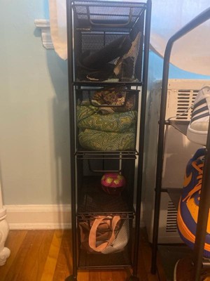 With four removable drawers, this file cabinet offers ample storage space for all your office supplies, documents, craft materials, or personal items. The drawers are made from sturdy mesh material, making it easy to see what's inside. Plus, the smooth gliding drawers make it effortless to access your items quickly and easily. The cart arrives assembled except for the four wheels which easily push into place.