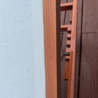 I'm a big fan of these patio chairs due to the fact we don't have extra cushions you need to really worry about. They're pretty straightforward and simple design. They have a nice wood. Look that really nice. Looks with the white padding. I like the overall the side of them. I think they'll be useful by a pool.