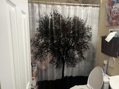 [This review was collected as part of a promotion.] I received my new Arbor Tree PEVA Single Shower Curtain and Hooks Set by Zenna Home n it was perfect..blacks and greys on a white background brought the tree to life..12 hooks inculed its a stunning addition to my sons grey an white bathroom...he loves it...we highy recommend Arbor Tree PEVA Single Shower Curtain and Hooks Set rom Walmart