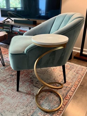 [This review was collected as part of a promotion.] Thank you, Linon and Influenster, for allowing me to test out the Linon Capiz Side Table with Metal Base in exchange for my earnest feedback and thorough review. This table is utterly elegant and elevates any space. I appreciate its small footprint. Its skinny sizing makes it a versatile piece that can be used all over the house and allows it many functions. This stylish side table will get a lot of use in my house as a drink holder, a catch-all near the couch, a plant stand, a photo display, and more. I love all things "white marble" and the touch of elegance that material brings to any space. This handy side table will get lots of use in my home. It offers the perfect height for use in sitting areas. What I especially like besides its gorgeous white marble surface and abstract metal stand, is that it offers leveling feet, so you can make quick adjustments in case your flooring is slightly uneven like it is in my antique home. This table is my new favorite piece of furniture. I definitely recommend it! I would buy it again and again!
