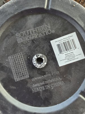 This lightweight wicker planter has UV-protection for year round, outdoor use. The planter is durable and I like the simple design, which will complement most outdoor settings. The planter has a hole that can be drilled. This is 14" high and the top is about 15" wide. You can add a decent sized plant or create a fun plant/flower arrangement.