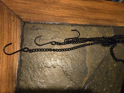 Decent hanging planter. Chain and hooks are coated, so hopefully they won't rust. They are super easy to install. Would have liked to have holes in the bottom for drainage. The way it's designed, I am not sure it will provide enough drainage without added rocks or something to the bottom.