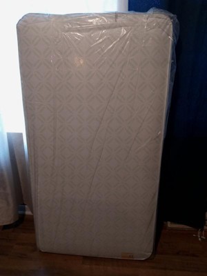 Got this got mattress for my 10 month old who was previously sleeping in a bassinet. It’s a solid, lightweight mattress & it’s not too soft or hard. He seems to sleep better & more soundly on it than his bassinet, which is a plus. My only complaint is that the plastic cover is cheaply made & the springs from my crib ripped it by he 2nd day I’d gotten it. Overall it’s a decent mattress though.