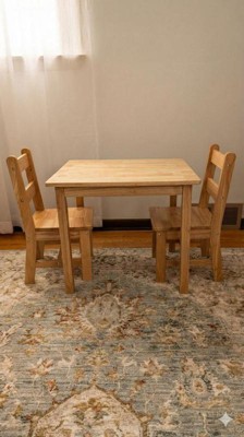 [This review was collected as part of a promotion.] I’m really pleased with this kids’ table and chair set. It looks nice and fits perfectly in a playroom without feeling bulky. The solid hardwood design gives it a sturdy feel, so I’m confident it will hold up well to everyday use. Assembly was straightforward and didn’t take long at all. I’d recommend using a drill to make the process even faster, though it can be done with just the included tools if needed. Once put together, the set feels stable and secure, and the chairs are just the right size for little ones. Overall, this is a great value for a durable, attractive kids’ furniture set. It’s functional, stylish, and easy to put together—highly recommend!