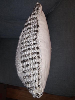 [This review was collected as part of a promotion.] This pillow cover is a stylish accent piece. The neutral colors allow this to blend in with a lot of decor styles. An insert is needed to fill the cover.The stitching and weaving and other intricate work looks great, the pillow is square, and the zipper in the back is straight and stitching looks good. I initially planned to put this on my loveseat, but one of the kids fell in love with the textures and claimed it as their own. I am very satisfied with the quality of this pillow. Highly recommended.