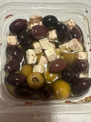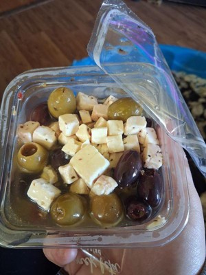 [This review was collected as part of a promotion.] These olives and feta are delicious! I buy this type of product all the time but this one was much better than I usually get. The olives are nice and firm, not mushy. I love it!