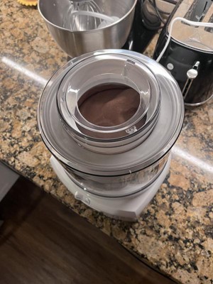 This icemaker is very easy to use and makes ice cream within 20 minutes. Amazing! If you like soft serve ice cream it comes out perfectly when it’s done, but if you want it to be firmer, it has to go into the freezer. After three different recipes I am finding it is a little icy after you freeze it so I’m hoping to find a recipe that keeps it creamy after frozen