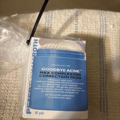 Thank you for sharing your feedback! We are sorry that your expectations were not met. Goodbye Acne Max Complexion Correction Pads are formulated with Prunus Persica (Peach) Fruit Extract to improve the appearance of dark spots, uneven skin tone and fine lines and wrinkles. Please reach out to our Customer Service team at support@peterthomasroth.com for any product questions you may have.