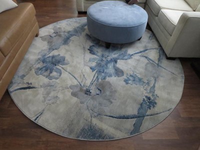 The design of the rug is perfect. I love the flowers and the way the stems and flowers are outlined. It is an interesting rug. There is just enought blue mixed with grey and white to make my room light. My friends have complimented me on the choice. I am concerned about the binding of the rug. If one walks over the edges the binding starts to unravel. Since I have only had the rug for three weeks I hope the raveling does not get worse.