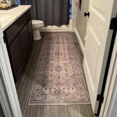 [This review was collected as part of a promotion.] This rug is a great addition to the entryway that leads to the wood floors into the hallway. The colors are just right without worrying about looking dark or dirty in this high traffic area. It goes well with the wood floors, and it doesn't slip or move at all. It is a low profile, but it stays in place without any tape or rug pad. It is the cats new favorite spot in the house. This rug is easy to clean and vacuum. This is a must have for anyone with pets or kids!