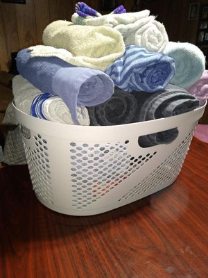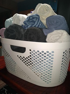 [This review was collected as part of a promotion.] I'm very pleased with this laundry basket I was able to fold all my towels and put them in there just fine and it made it easy to carry without being too big and bulky.