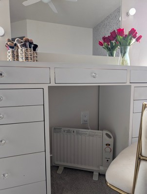 This heater works amazing! Perfect size and it heats quickly. I love that it is energy efficient! Great warming and safe! I really recommend it!!