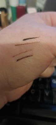 I liked the black liquid liner well enough, although I found the pencil side to be a bit dry and hard to use. But I wanted to tone down my look so I tried the brown instead, and I'm not impressed. Oddly enough, I found the pencil side on the brown to be creamier and easier to apply, but the brown liquid liner is a joke. Whereas the black was a nice, bold, opaque black, the brown is so transparent it's like water color. Hardly visible, even on my very pale skin. Thought it was user error so I tried shaking it up really well, painted several lines on the back of my hand. . . same thing. Very clear and runny.