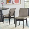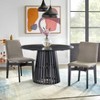 The Pavia 3-Piece Round Black Dining Set by Lifestorey gives your dining room a unique and wonderful focal point. This striking table is designed with a sturdy Strongbow base and supportive slats made from solid rubberwood. The spacious 45-inch tabletop is constructed of veneered MDF, showcasing a beautiful wood grain in a rich Black finish. Complementing this table are two chairs with sleek lines upholstered in a soft light gray linen type fabric. The tapered style chair legs constructed of solid rubber with a rich Black finish, completes this midcentury modern set.
