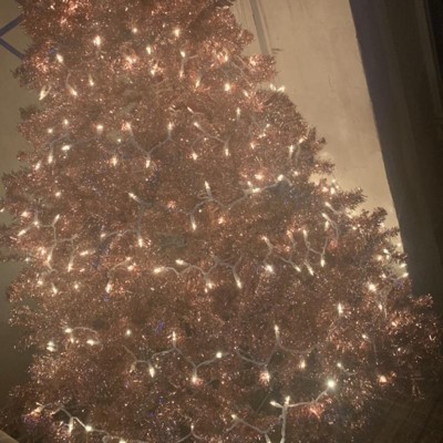 ~ The Christmas tinsel tree is a beautiful rose color. ~ You only need to fluffy out the leaves. ~ It already shines because it is tinsel. ~ The size 6 feet is the perfect size, and it is a little wide, so it is perfect. ~ I am so very glad I ordered this tree!! ~ It matches my LR decor perfect!! ~ See pic attached! ~ I am happy.