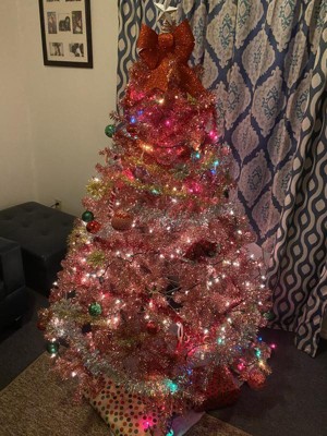 This pink tinsel tree has captured the hearts of many guests with its stunning color and full appearance. While some guests experienced issues with assembly and quality, the majority praised its vibrant hue and easy setup. The tree's unique design adds a modern twist to holiday decor, making it a delightful centerpiece for any festive gathering. Guests appreciate its affordability and the joy it brings to their holiday celebrations.