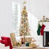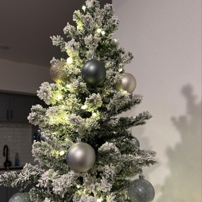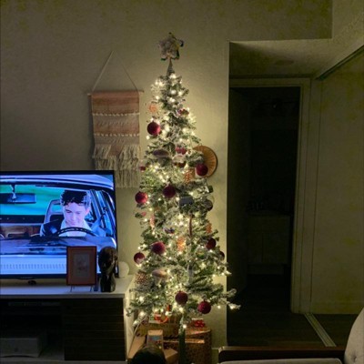 - FLOCKED SLIM ALPINE DESIGN: A tapered profile with lush green foliage and quality snow flocking leaves this tree well-suited to bring the beauty of a winter day into any decorative space, large and small, as an accent or centerpiece