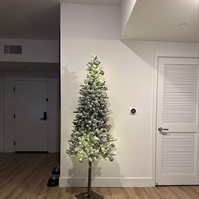 It’s the perfect tree for my house. I have limited space. Love the flocking and that it is pre-lit. So easy to put together.