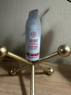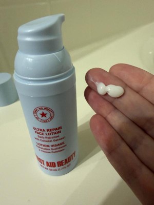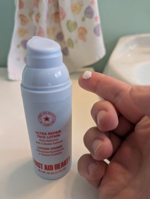 [This review was collected as part of a promotion.] This ultra repair face lotion from First Aid Beauty is so hydrating on my skin. I have sensitive skin that sometimes turns red and irritated. This lotion helps. It sinks right in to leave my face feeling so soft. Make up goes on like a dream.