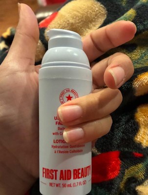 [This review was collected as part of a promotion.] This is my first time trying a First Aid Beauty product and I am absolutely blown away. This face lotion feels so moisturizing on my skin. It leaves my skin feeling hydrating. The colloidal oatmeal is a plus, my sensitive skin feels so calming on my skin. The bottle makes it easy to dispense the product without wasting it. I will be repurchasing this product once I finish it! Love love love!