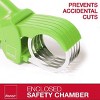 Just place your fruit or vegetable inside the cutting chamber and squeeze. The comfort grip handle is designed to give you total control while providing extended comfort allowing you to prep for even the biggest family meal. And, thanks to the enclosed cutting chamber, you’ll never accidentally cut yourself.