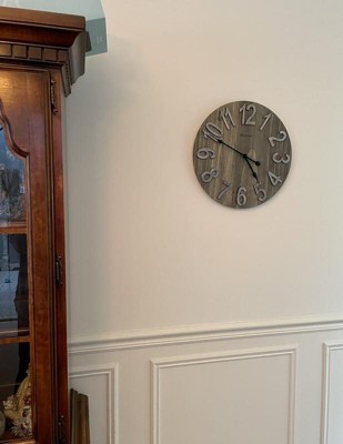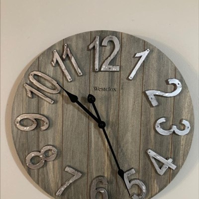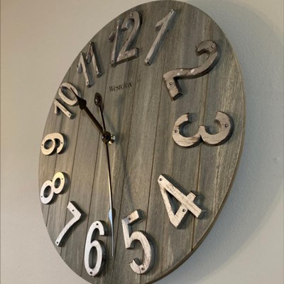 15.5" MDF with Raised Numbers Wall Clock - Westclox: Rustic Farmhouse Design, Quartz Movement, Indoor Use