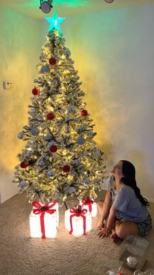 I was so excited to get this Christmas tree because I've always wanted a flocked tree. When I opened the box, there was so much of the "snow" loosely in the box. It was extremely messy putting it together. I'm hoping that over time, the snow will stop coming off. Despite it being so messy, it is a beautiful tree.