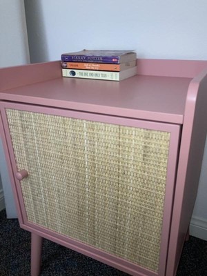 Pink rattan nightstand