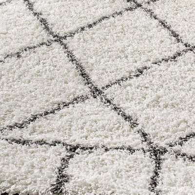 JONATHAN Y Mercer Shag Plush Tassel Moroccan Geometric Trellis Ivory/Gray 5 ft. x 8 ft. Area Rug, Non-Shedding, Easy-Clean, Durable Synthetic Fibers