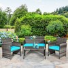 Costway 4PCS Patio Rattan Furniture Set Conversation Glass Table Top Cushioned Turquoise/Red/Grey/Beige/Navy/Black